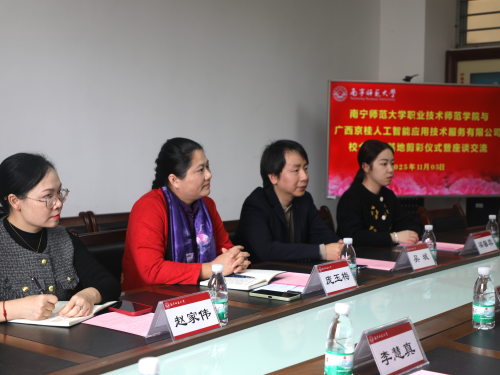 11月5日下午,职业技术师范学院与广西京桂人工智能应用技术服务有限公司在文星楼605教室前,举行校企共建实训基地揭牌仪式。此次仪式标志着双方合作迈入实体化运营与深度协同的新阶段。学院院长陈良、副院长蓝洁,企业总经理吴城、代表庞玉梅等共同出席仪式。