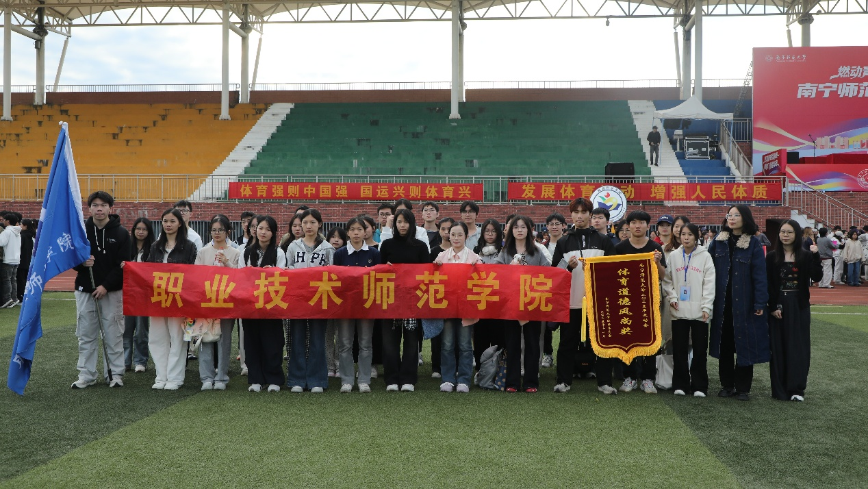 赛道绵延,彩旗飘扬。11月21日,南宁师范大学校运会的热潮仍在武鸣校区运动场延续。职业技术师范学院参赛师生带着全院的期盼,秉持专业竞技精神与良好文明素养,积极投身赛事,在激烈比拼中展现强劲实力,用汗水谱写下绚丽的青春序章。