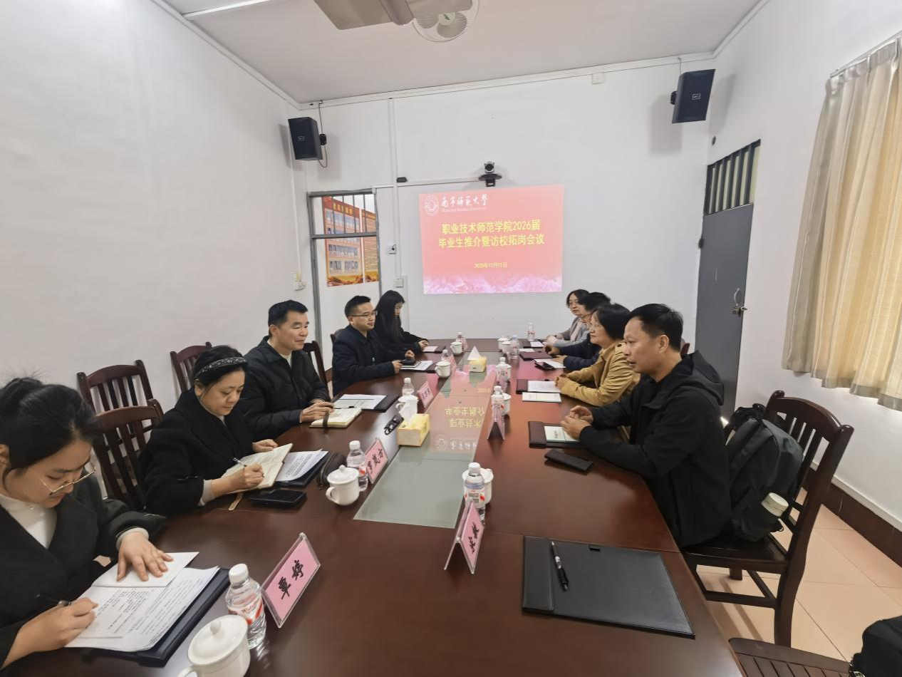 为加强我院各专业的宣传力度和拓宽学生就业渠道,2025年12月11日,职业技术师范学院党委副书记刘卫华带领专任教师一行五人赴广西工贸职业技术学校开展访校拓岗。