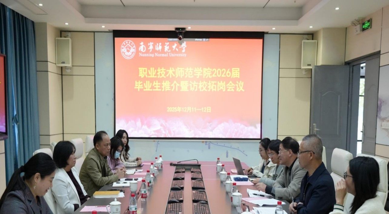 2025年12月11日至12日,南宁师范大学职业技术师范学院王屹教授率数字媒体教研室主任高越飞老师等一行五人,先后走访广西金融职业技术学院、广西交通技师学院、广西交通职业技术学院,开展毕业生推介暨访校拓岗活动。此次活动不仅为我院与兄弟院校搭建起坚实的合作桥梁,更有效拓宽了毕业生就业渠道。