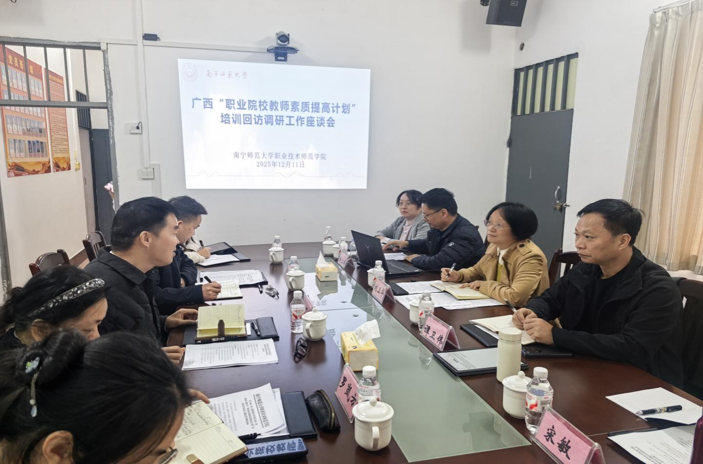 为深入贯彻落实习近平总书记关于教育的重要论述和全国职业教育大会精神,全面了解我院承担的广西2024年、2025年“职业院校教师素质提高计划”的培训质量和职业院校的培训需求,2025年12月11日,职业技术师范学院党委副书记刘卫华带领5名专任教师组成调研组赴广西现代职业技术学院、广西工贸职业技术学校、河池市技工学校,开展学员回访与专题调研。