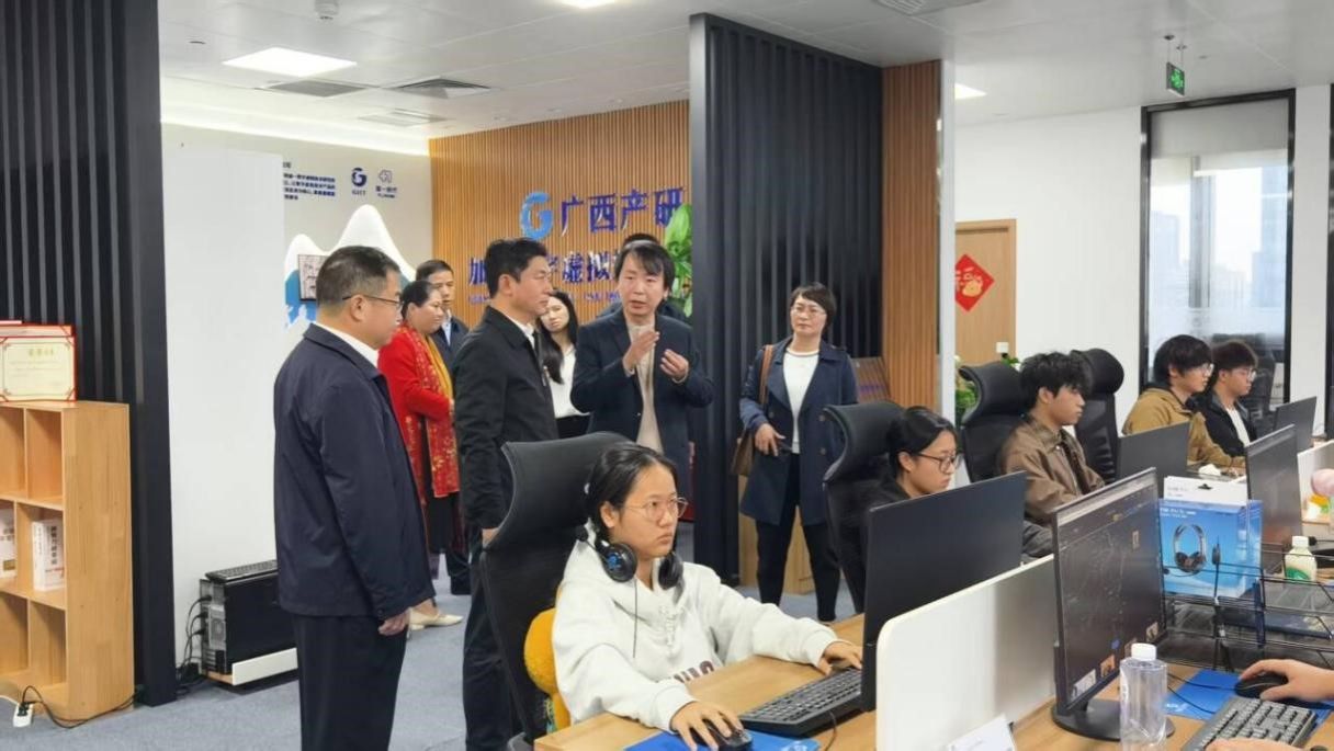 11月6日下午,广西壮族自治区发改委党组书记白松涛一行莅临我院合作企业广西京桂人工智能应用技术服务有限公司开展专项调研工作,调研过程中,白松涛书记对南宁师范大学职业技术师范学院数字媒体专业学生的表现给予了高度评价,对我院人才培养成果给予了肯定。